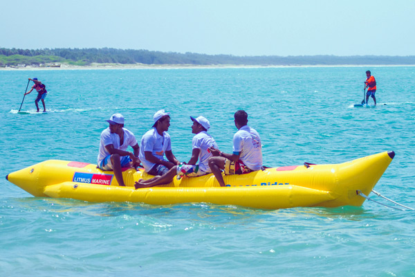 In the Bumper ride, the bumper boat is attached to a Speed boat and with the boast of the speed of the boat; Bumper bounces up and the passenger have a feel of flying up. A large inflatable air-filled rubber tube moved by a speed boat into the open sea takes place and the challenge is to clasp on as long as you can while the speed boat sparkle over gushing waves in a shot to throw you off.