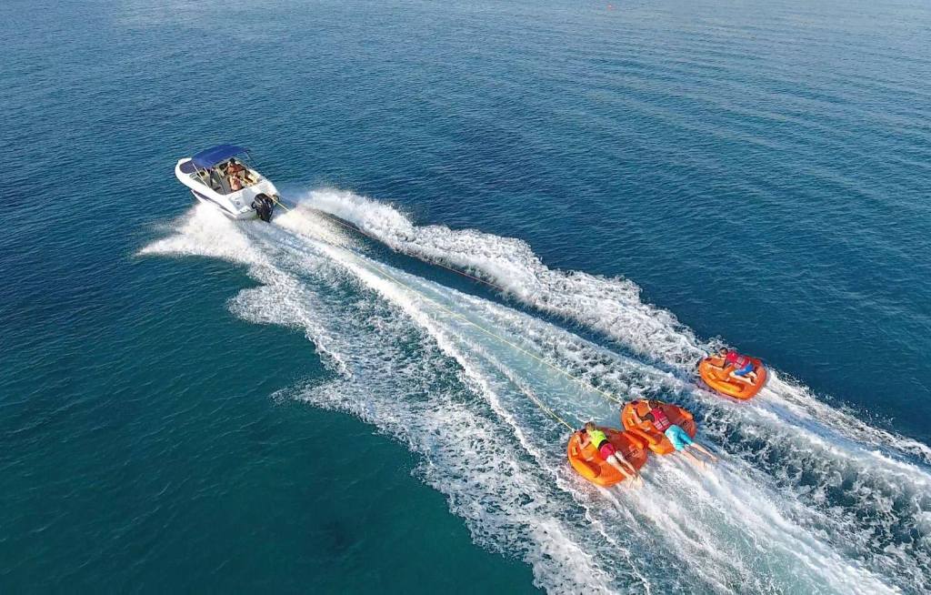 In the Bumper ride, the bumper boat is attached to a Speed boat and with the boast of the speed of the boat; Bumper bounces up and the passenger have a feel of flying up. A large inflatable air-filled rubber tube moved by a speed boat into the open sea takes place and the challenge is to clasp on as long as you can while the speed boat sparkle over gushing waves in a shot to throw you off.