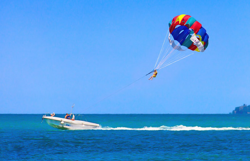 Envision yourself flying high in the open air while the winds grace you, and down below is the immense mighty Arabian Sea. Isn’t it sounds like adventurous? Then Parasailing in Goa is must to try for you. This is the adventure water sport you should definitely try when you are in Goa. In this sport, a parachute is attached to a speed boat.